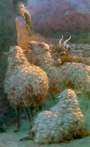 И даже овцы, которых он убивал, перестали сопротивляться. Он просто подходил к одной из них и говорил: "О, мой лучший друг, мы давно не общались. Пойдем ко мне на двор. Мне нужно с тобой посоветоваться по поводу стада овец". И овца с гордостью шла за волшебником на двор. И там он действительно спрашивал у своего лучшего друга, как идут дела в стаде. Жертва с радостью рассказывала ему обо всем, а потом волшебник убивал ее. Поскольку смерть наступала мгновенно, то овца ничего не успевала понять.