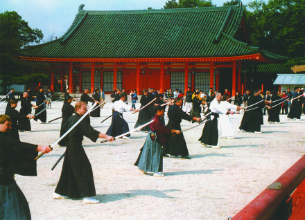 - разучивание сложных связок, тренировки на развитие духа и чувства противника (традиционные трактаты говорят, что у самурая должно быть "два зрения" - одно глазами, а другое интуицией).