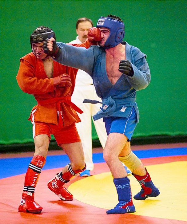 - дистанция вплотную - самбисты обхватывают друг друга, прижимаясь туловищем один к другому или обвивая ногу ногой.