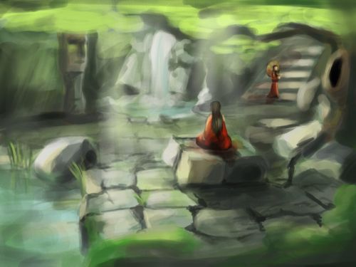 Вы медленно поднимаетесь к поверхности и смотрите на границу воды и воздуха - грань двух стихий. Вы видите серебристое, подвижное зеркало, отражающее ваше юное лицо. Рывок - и вы на поверхности, хватаете жадно ртом воздух, пахнущий водой. Ваше лицо охватывает жар. Вы выбираетесь на берег, на разогретый солнцем камень и не можете отдышаться, вас согревает тёплое утреннее солнце.