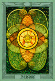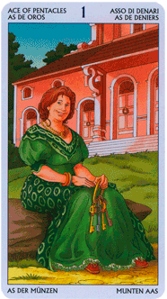 В прямом положении это карта новых начинаний и неожиданного успеха; она благоволит всем, кто умеет и готов рисковать. Любовь, признание, хорошие и стабильные отношения в кругу семьи и на работе, материальный достаток, победа — Туз Пентаклей обещает исключительно позитивное завершение любого дела.