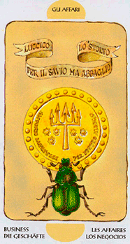 | «Таро гномов» | Все начинается с маленькой золотой монеты, которая может превратиться либо в пыль, либо в миллионы таких же драгоценных денежных знаков. Этот аркан подсказывает, что человеку следует обратить внимание на свое поведение в делах, связанных с финансами. Если он склонен к бездумным тратам, то никогда не сумеет нажить богатство. Только трудолюбие, рациональный подход и разумное использование сил дадут потенциал, необходимый для накопления капитала. | ![]() |