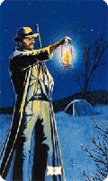 | IX | Отшельник | ![]() | Тайный роман. Возможно, один из партнеров состоит в браке и скрывает это. Как прогноз на будущее, карта обозначает краткосрочные, но достаточно приятные для обоих влюбленных отношения |