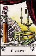 | Подарок | ![]() | Если раньше отношения омрачались недопониманием со стороны одного из партнеров или нежеланием идти на уступки, то сейчас все изменится. Оба человека переосмыслят причины, которые держат их вместе, и поймут, что не способны существовать друг без друга. Эта карта может трактоваться буквально и обозначать полученный от кого-либо презент |