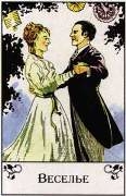 | Веселье | ![]() | Все желания влюбленной пары исполнятся, и это поспособствует укреплению отношений. Каждый из партнеров чувствует радость и счастье в присутствии своей второй половинки и скучает в ее отсутствии, хочет доставить ей удовольствие. Также эта карта символизирует признание в любви или торжественную вечеринку по поводу обручения. Одиноким людям сулит многообещающее знакомство в ресторане или на концерте |