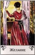 | Желание | ![]() | Отношения находятся в конфетно-букетной стадии, или же партнеры длительное время не могли видеться и общаться. Они тоскуют и мечтают о том дне, когда окажутся вместе. Иногда эта карта символизирует намерения мужчины, который настроен только на кратковременный интим или же встречается одновременно с несколькими женщинами |