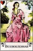 | Возлюбленный | ![]() | Обозначает любящего мужчину. Карта также символизирует хорошее здоровье, прибыльный бизнес, перспективные проекты, верную дружбу. Можно воспринимать ее и как совет к налаживанию дружеских отношений с людьми, которые кажутся недоброжелательными, но на самом деле боятся показаться навязчивыми |