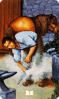 | V | Кузнец | ![]() | Мужчина-добытчик, верный семьянин. Он сделает все, чтобы оградить любимую от проблем и жизненных невзгод. Взамен потребует от нее быть хранительницей домашнего очага. Эта карта характеризует отношения как спокойные и ровные, лишенные бурных страстей, но наполненные чистой и светлой любовью |