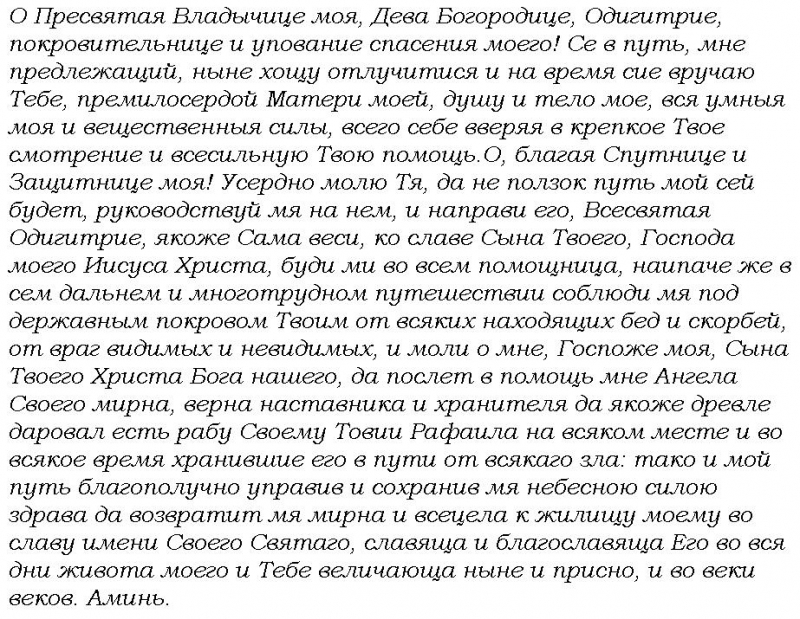 Качество и исправность автомобиля, а также опыт и внимательность водителя очень важны, но не гарантируют отсутствия неприятных происшествий в пути. Чтобы избежать опасностей, читают специальные молитвы о помощи в дороге. По искренним мольбам Господь сохраняет души молящихся, направляет к благу пути их. Пресвятая Богородица оберегает путешествующих материнской заботой, святой Николай благословляет на безопасную дорогу.