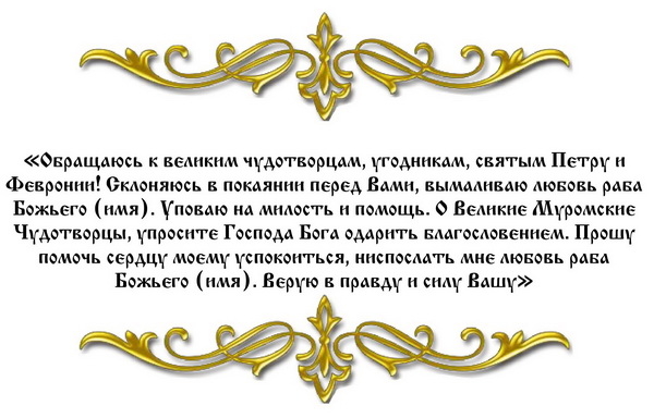 Люди в своей жизни ищут счастья, любви, умиротворения, но многим так и не удается достичь желаемого. Они строят планы, ищут способы найти свое предназначение в этой жизни, да даже просто пытаются стать кому-то нужными, но судьба все строит так, что радости в жизни остается совсем немного, а проблемы возникают одна за другой, не оставляя шанса стать счастливым. Люди не задумываются, что их проблема может решиться простой молитвой, но если они молятся, это не значит, что их вера в Бога принесет успех в личной жизни. Необходимо понимать, что поклоняться Всевышнему - одно, а просить помощи у святых - совсем другое. Если проблемы связаны с мужем/парнем или женой/девушкой, то молиться следует Петру и Февронии Муромским.