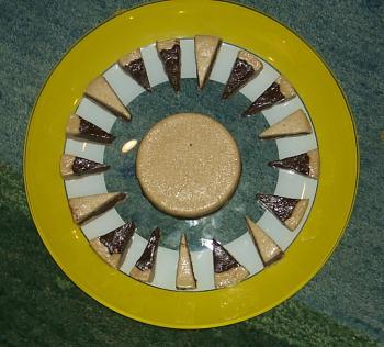 - Положить на дно формы грецкие орехи, залить получившуюся смесь в форму и охладить в холодильнике.