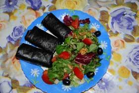 Вы просто пальчики оближите, когда попробуете эти сыроедческие блинчики с начинкой. Это блюдо можно подавать с гарниром и без. Блинчики мы будем делать из морской капусты для суши, которую можно купить в любом крупном супермаркете. Её потребуется предварительно немного размочить.