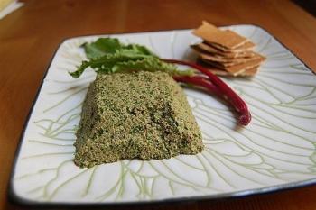 Сложите грецкие орехи в блендер и размельчите до маленьких кусочков. Добавьте туда порезанную кинзу и чеснок (предварительно мелко нарезанный), залейте лимонным соком и прокрутите ещё раз. Теперь добавьте свекольную ботву и перемалывайте до получения однородной массы. Подавать вместе с овощами или крекерами (для не сыроедов).