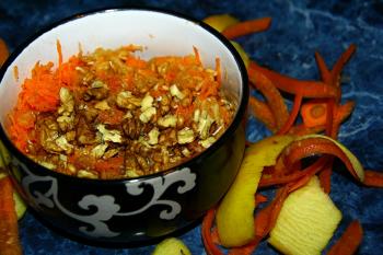 Представляем вашему вниманию простой и быстрый салат с морковью и грецким орехом. Готовка этого замечательного угощение отнимет у вас не более 15 минут. За счет содержания в этом салате пшеницы и яблок, этот салат хорошо насыщает и заряжает энергией на целый день.