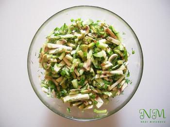 Если вы заядлый любитель грибов, а в особенности шампиньонов, то следующий рецепт вам определенно придет по душе. Этот нежный салат состоит из одних шампиньонов вперемешку с авокадо, огурцом и зеленью. Такой салат не только хорошо насыщает, но и несет в себе полный комплекс витаминов, которые нужны современному активному человеку. Кушайте на здоровье!